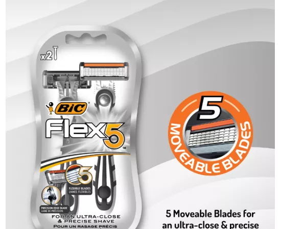 BIC Flex 5 Razor delivers a superior shave with five flexible blades that contour to your face for a close, comfortable shave. Includes 2 razors in a blister pack for easy storage.