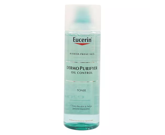 Eucerin DermoPurifyer Toner 200ml is a facial toner formulated for oily and blemish-prone skin. Its antibacterial formula contains 2% Lactic Acid, which unclogs pores, inhibits bacterial growth, and prevents blemishes without over-drying the skin. It's particularly effective in the T-Zone and other problem areas.