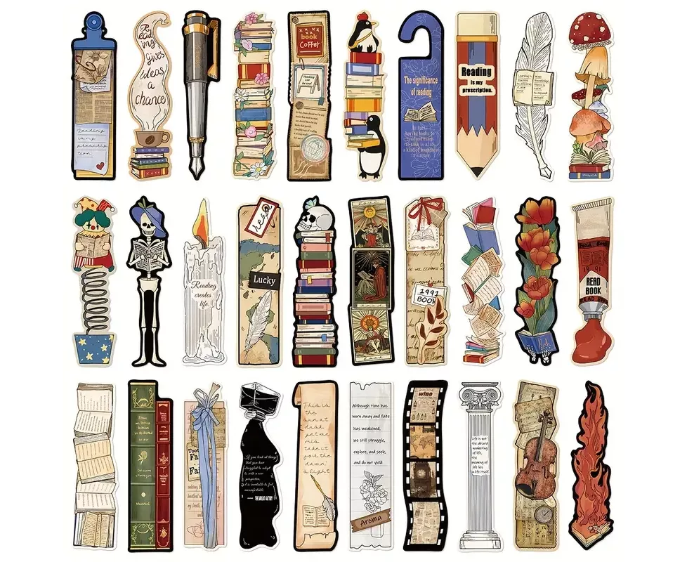 Bring elegance to your reading experience with these vintage-inspired bookmarks that whisper stories of old libraries and timeless adventures. Each piece features a whimsical cartoon design — charmingly simple yet full of character. Perfect for bookworms who cherish the joy of turning a real page, these bookmarks are a celebration of imagination.