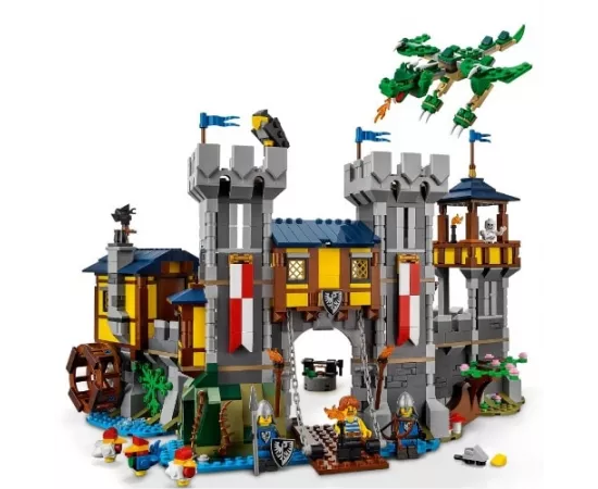 Kids will love taking a trip back in time with this brilliantly detailed LEGO® Creator 3in1 Medieval Castle (31120). It’s packed with all they need to create captivating stories – a 2-floored Castle toy with an opening gate, water mill, prison, king’s room, 3 minifigures, dragon toy, 3 chickens and a rat. There are also hinges so the Castle can fold open at the back. 3in1 awesome toys fuel kids’ passions. Creative kids have the chance to build 3 different models with this LEGO Creator 3in1 set. They can start with the Medieval Castle, rebuild it into a castle tower with a catapult or transform it into a bustling marketplace with a water mill, tower and prison. Fantastic gifts for kids to grip their imaginations LEGO Creator 3in1 buildable toys let kids enjoy imaginative play with 3 different models in every box! The possibilities are endless as each model can be rebuilt into something new. Select from a brilliant 3in1 range including crocodiles, fairgrounds and rockets.